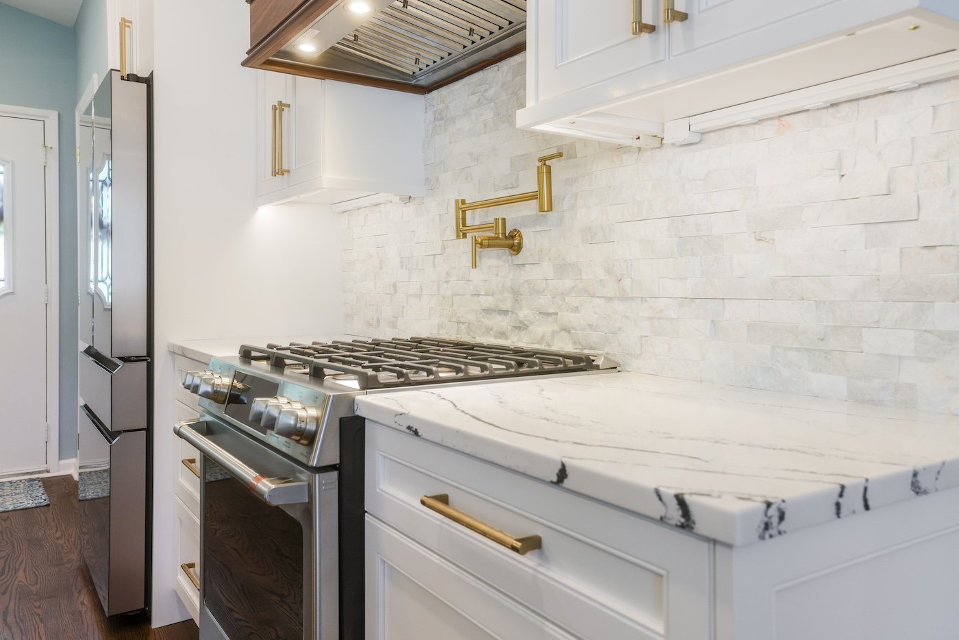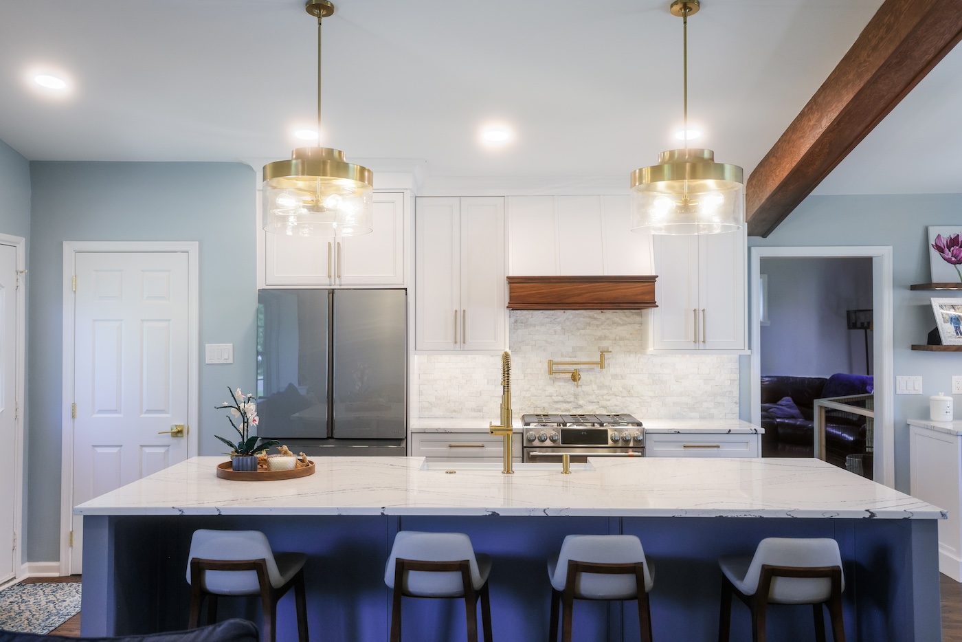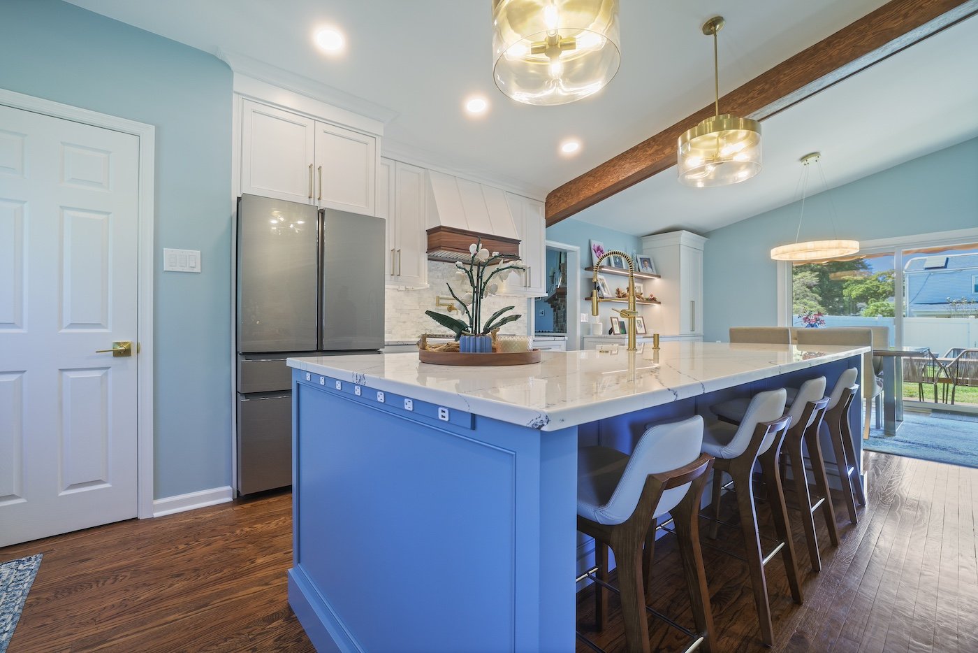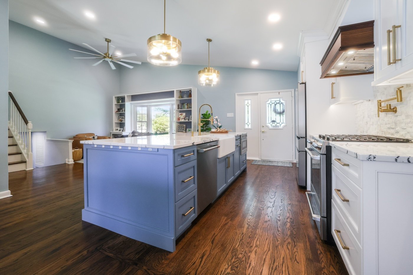 Originally, the first thing you saw when entering the home was a large wall blocking light and sightlines. By removing it, we completely transformed the feel of the space. Now, when you walk through the front door, you’re welcomed by an elegant, light-filled kitchen and a beautiful open-concept layout.