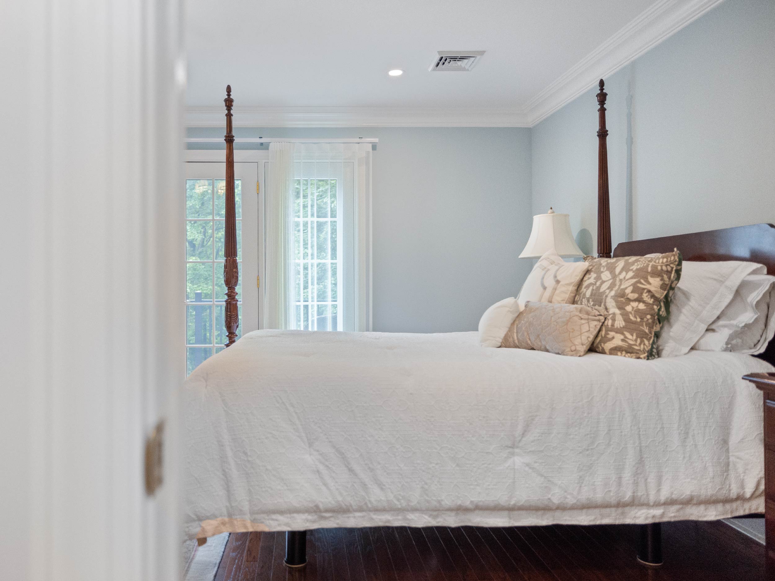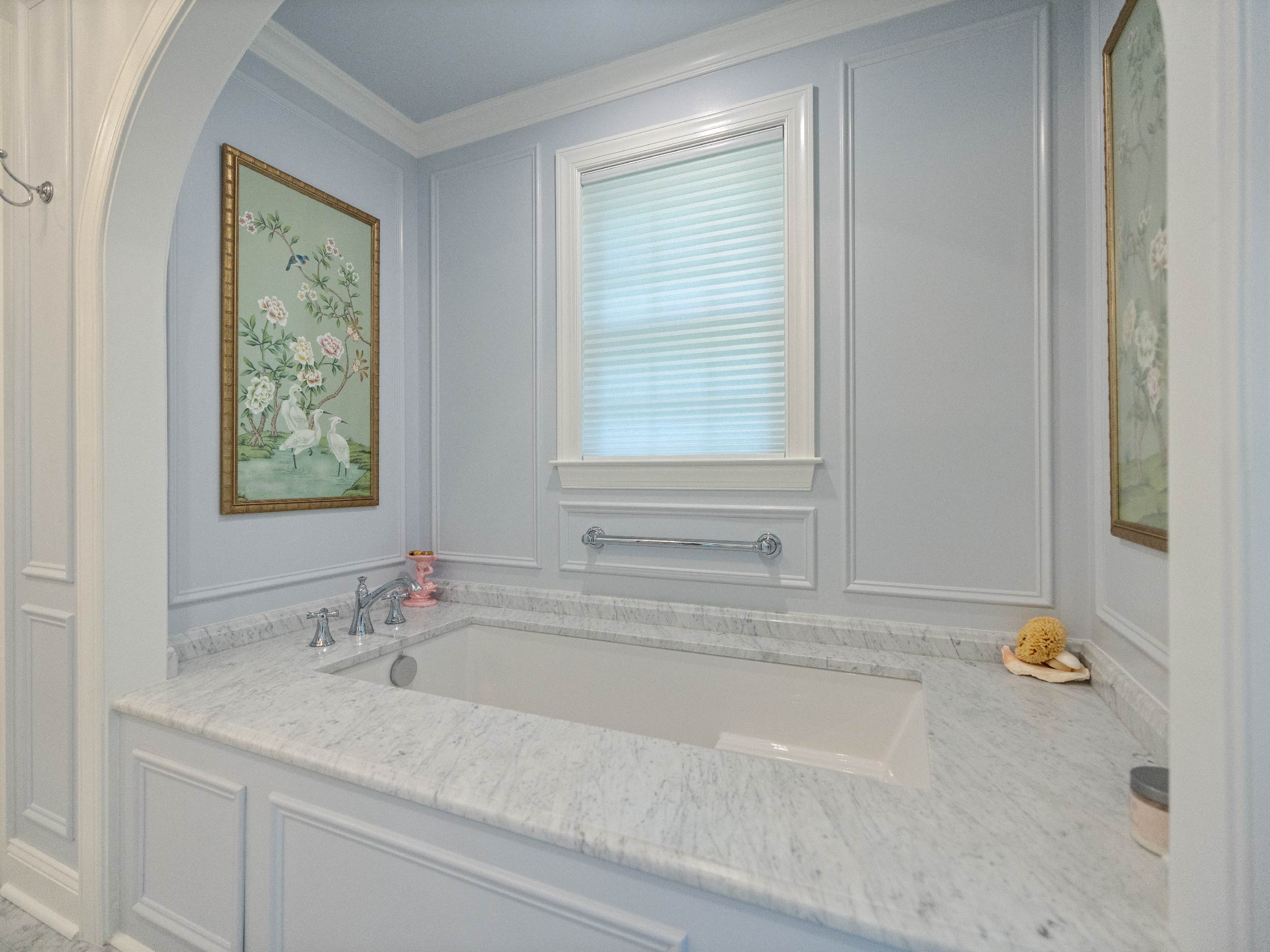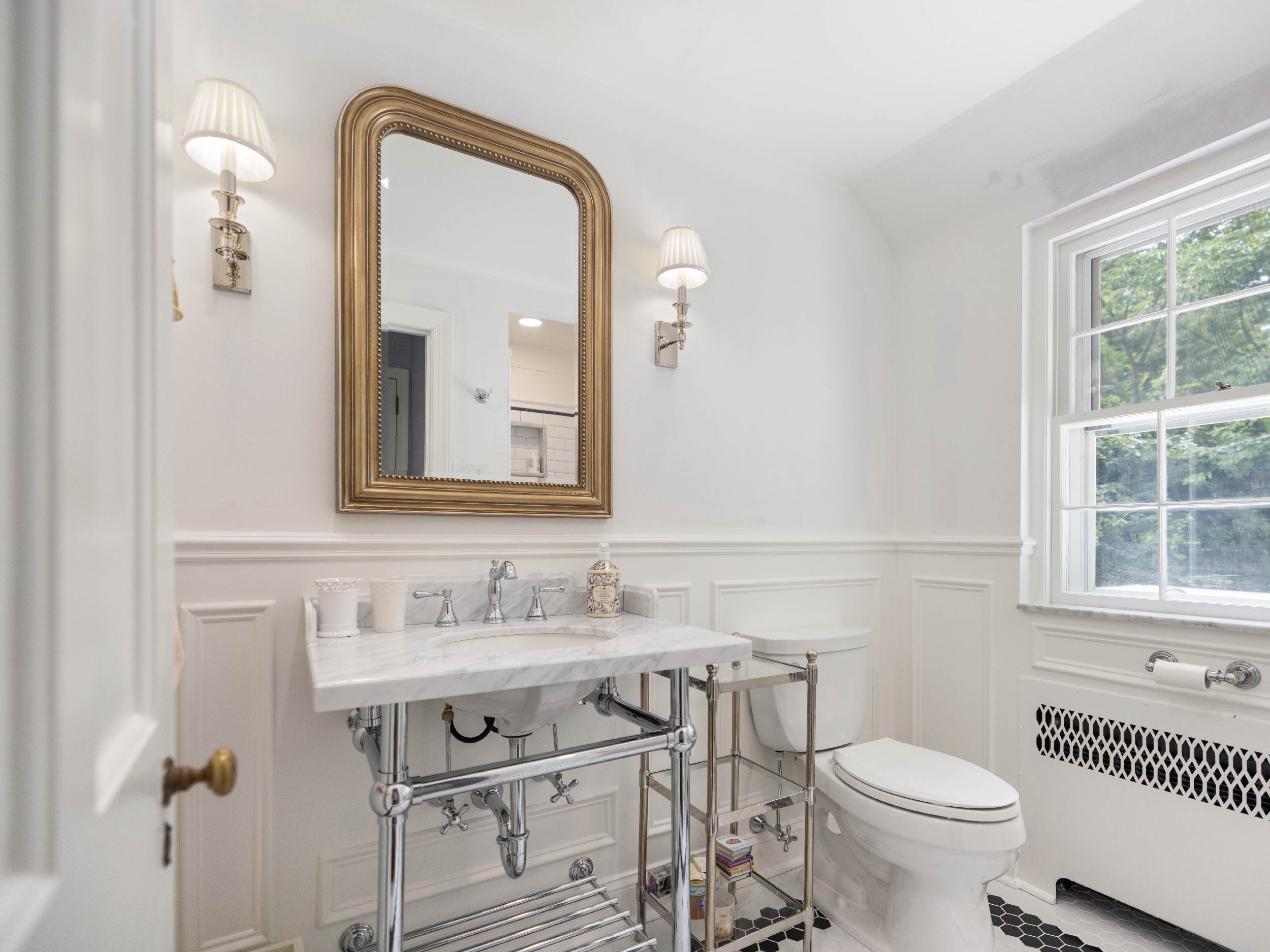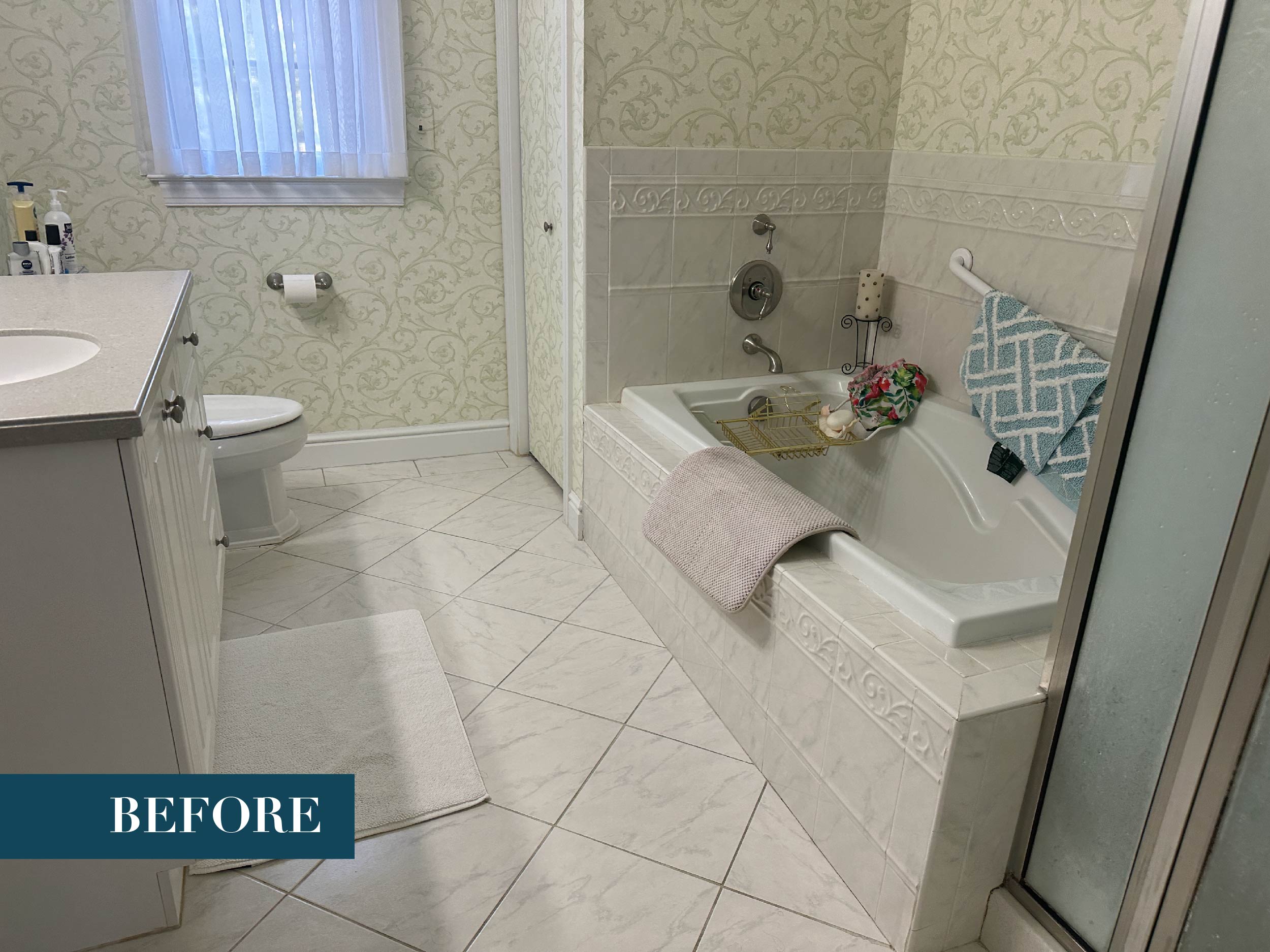 This Abington couple trusted us with their long-held desire to take the wasted space from their very large primary bedroom and redesign it into the primary suite of their dreams. Their upsized primary bathroom now features marble floors and vanity tops, wainscotting, a lovely chandelier, and a private water closet. Whether soaking in the arched tub nook or taking a luxurious shower, the fixtures and finishes are stunning. This bathroom is truly elegance defined.