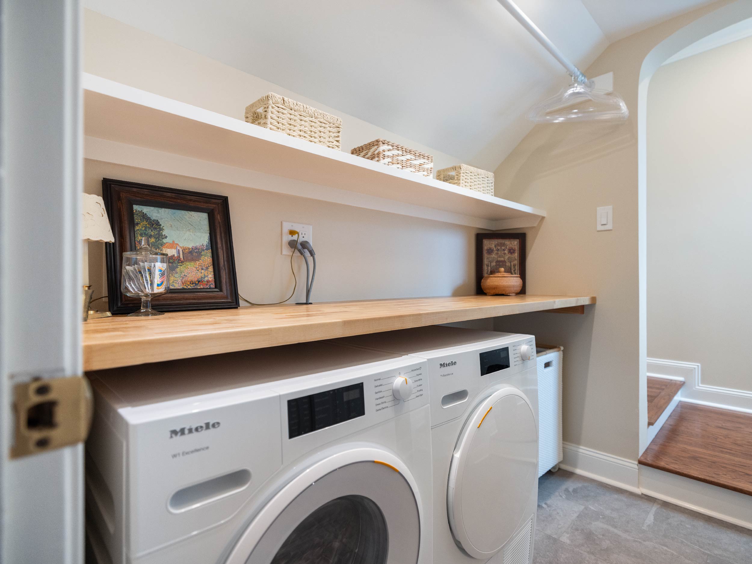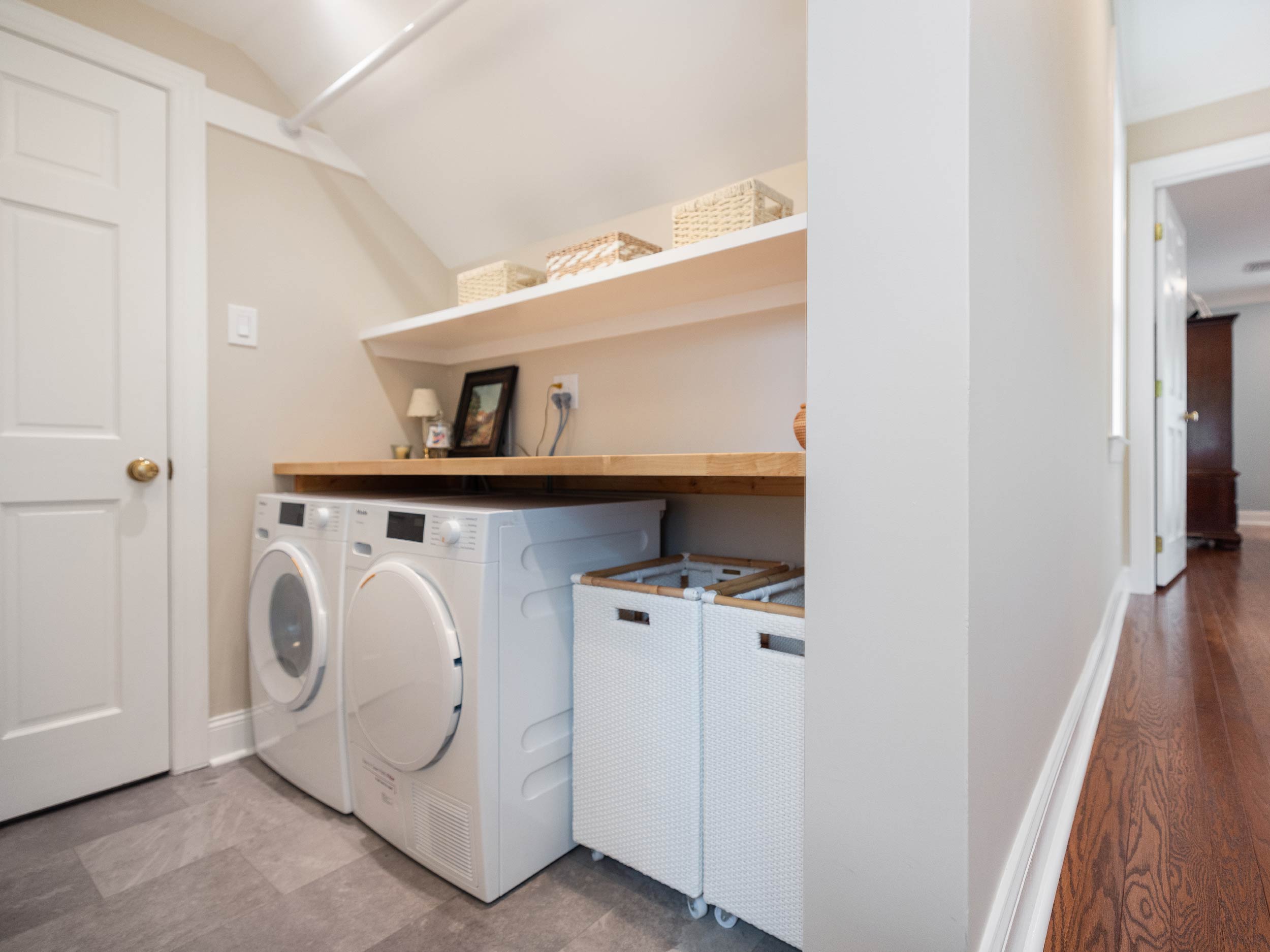 An en-suite laundry room completes the space, pairing luxury with practicality and saving these wonderful customers many heavy stair trips in their golden years. We were invited back shortly after we finished to renovate the en-suite guest bathroom down the hall, again in this customer's trademark refined and elegant finishes.